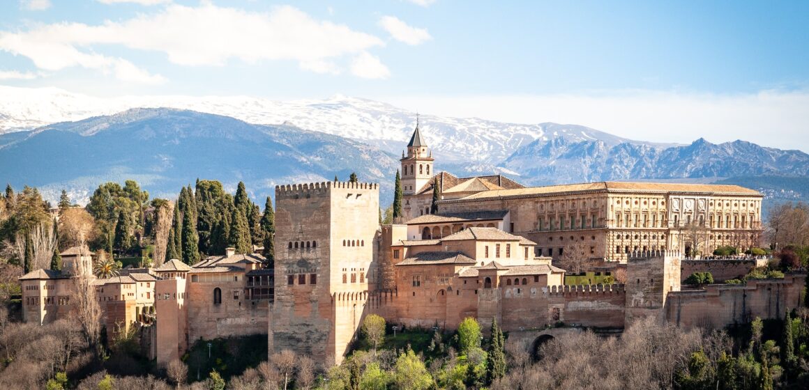 Alhambra, Patrimônio Mundial da UNESCO, é um exemplo notável da arquitetura islâmica, com seus detalhes em estuque, azulejos geométricos e tetos de madeira esculpidos. Os visitantes podem desfrutar de vistas panorâmicas da cidade, especialmente do bairro de Albaicín, com sua arquitetura mourisca e espanhola, e explorar os jardins do Generalife.