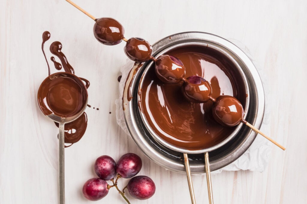 Espetinho de uva com chocolate